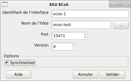 Pour synchroniser la manette ECoS avec Rocrail l'option du serveur Permettre 0 comme identification de manette de commande doit être activée.