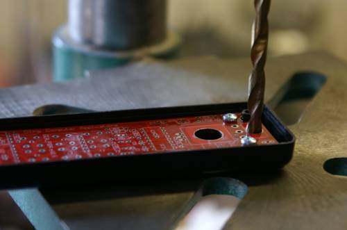 Fix the empty PCB with fasteners in it's future housing, and use it to drill the exact positions of the pushbuttons, SW1 and leds.