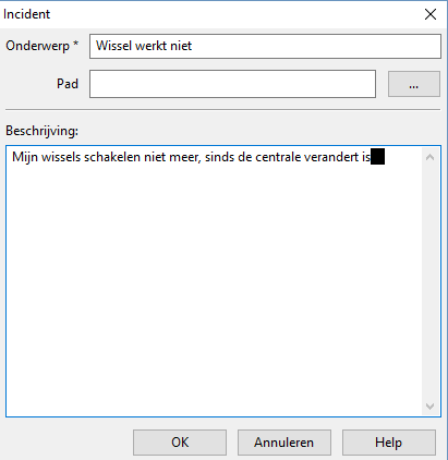 - Schrijf in het incident Dialoog een stap voor stap overzicht over hoe het probleem te reproduceren is.