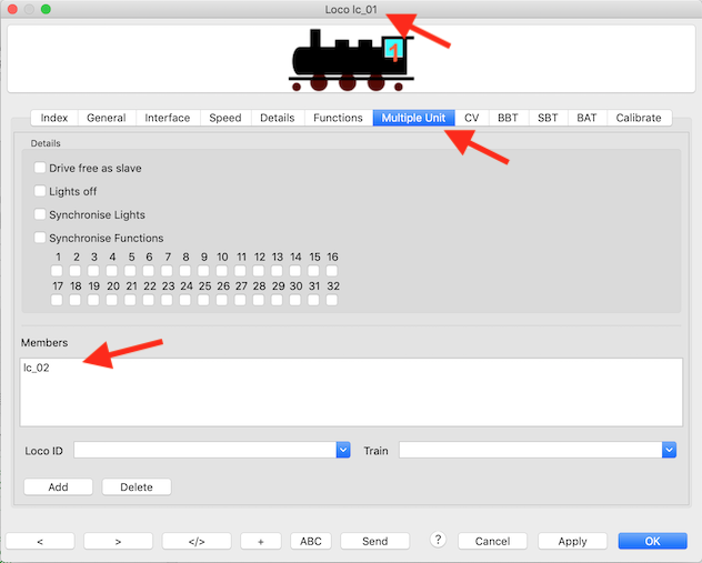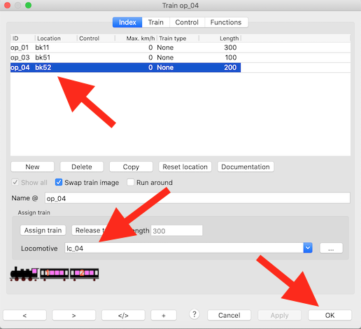 Wijs een "Rocrail"-trein toe aan een locomotief.