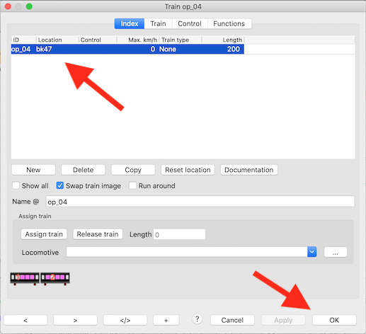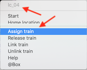 | Wijs trein toe | Wijs trein toe | Wijs een "Rocrail-trein" toe aan een loc | | a) handmatig b) via acties c) via XML script |