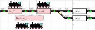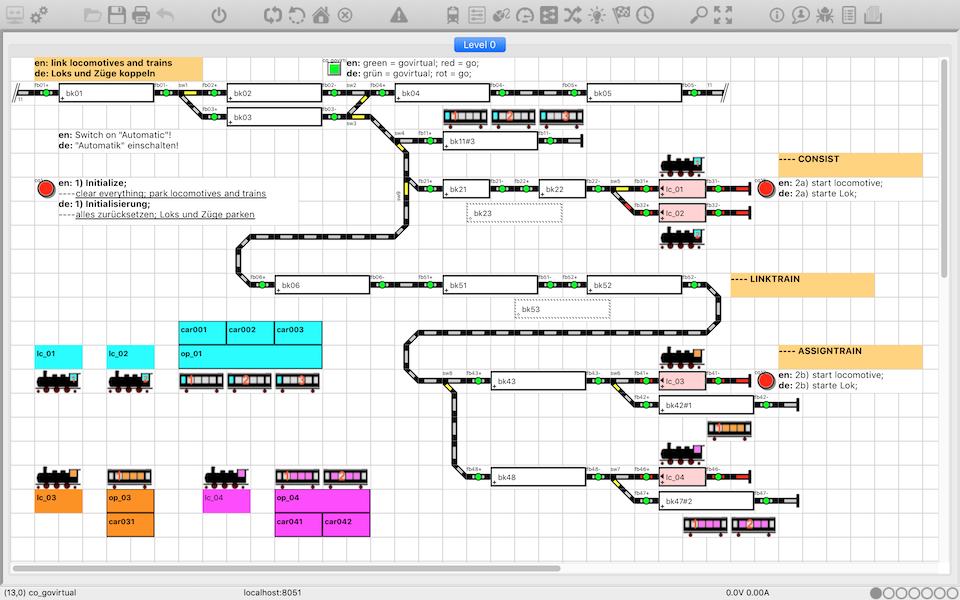 De treinen zijn al voorgedefiniëerd. Treinen en locomotieven staan op hun vooraf bepaalde posities.