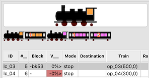 | locomotief | init blok | trein | init blok | in gebruik voor | rijschema | wagens |