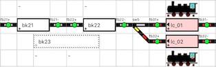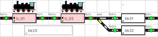 De voorbeelden zijn beperkt tot een maximum van twee loc en twee treinen.