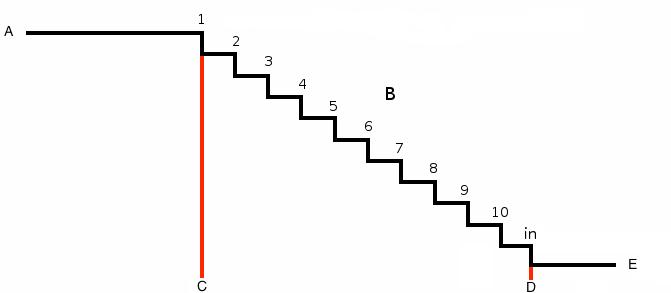 Dit is de tijdsduur tussen ENTER en IN en wordt gedeeld door het aantal stappen.