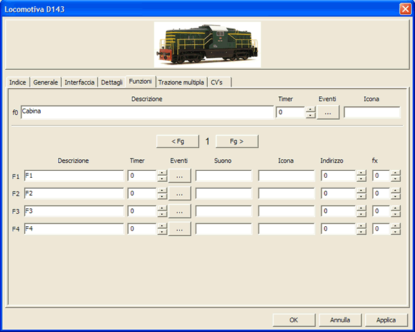 Gli eventi funzione saranno attivi solo quando la locomotiva sta lavorando in modalità automatica!