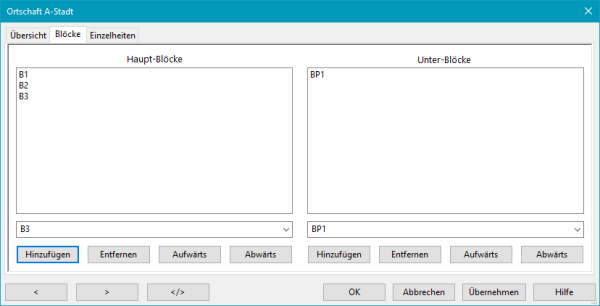 Ortschaften: Blöcke