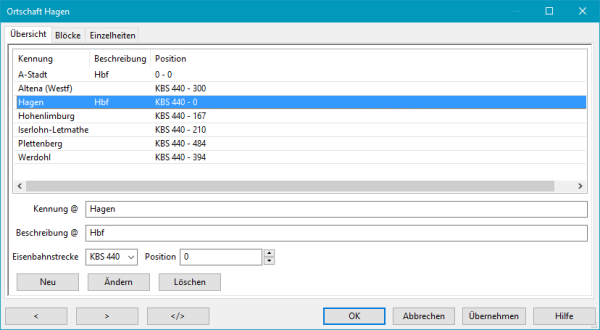 Hinweis: Ortschaften, die ohne Blöcke erstellt wurden, erzeugen Fehlermeldungen im Router. (Beispiel:ERROR: location[A-Stadt] has no blocks defined)