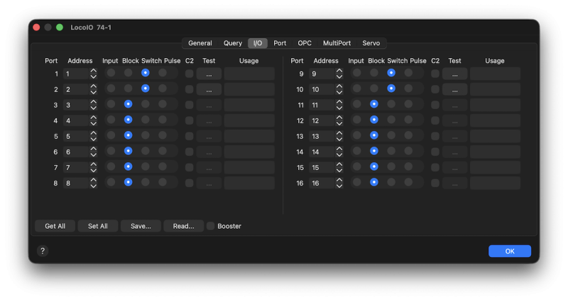 For both address 1 and 2 are two ports with different gates programmed for controlling dual coil switch motors.