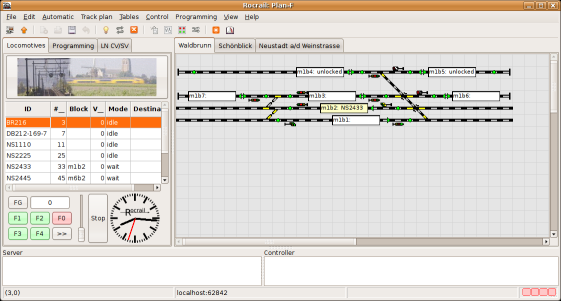 Iedere module/spoorplan heeft zijn eigen tab in Rocgui, en omdat je meerdere Rocgui's gekoppeld hebt met de server is het mogelijk om de gehele layout te tonen over een aantal computers.