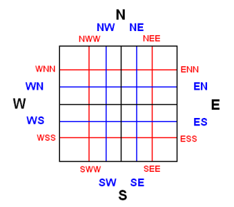- West = 270°