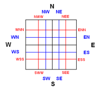 Alle modules hebben vier logische zijden, die worden aangeduid met windrichtingen: