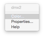 In Rocview wordt voor uitgangen, met de kleur-optie geactiveerd, een extra pop-up-menu voor de kleurkeuze geopend: