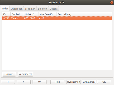Voeg hier de naam of namen toe van de binnen rocrail gedefinieerde modules die door de betreffende booster worden gevoed.