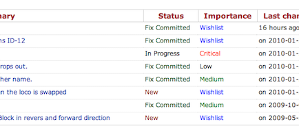 Wensen voor aanpassingen van Rocrail kunnen net als foutmeldingen geplaatst worden in :