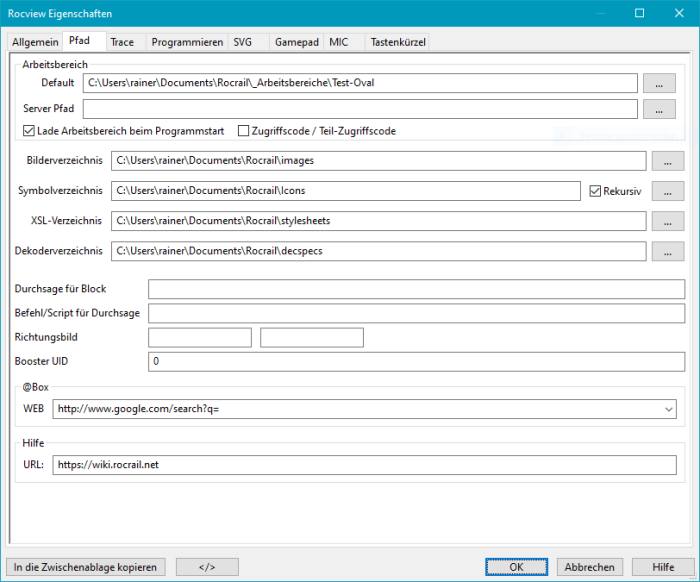 Dieser Pfad ist optional und kann verwendet werden, um auf den Rocrail-Server- und Bibliothekspfad zu verweisen, falls Rocview nicht mit dem Desktop-Link gestartet wird.