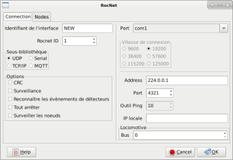 Pour la communication entre le RocNet-CS et le RocNetNode utiliser l'adresse IP broadcast 224.0.0.1.