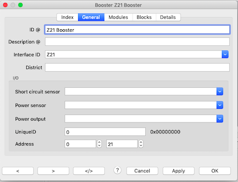 Deze optie moet zijn aangevinkt als booster events moeten worden ontvangen van de Z21-centrale.