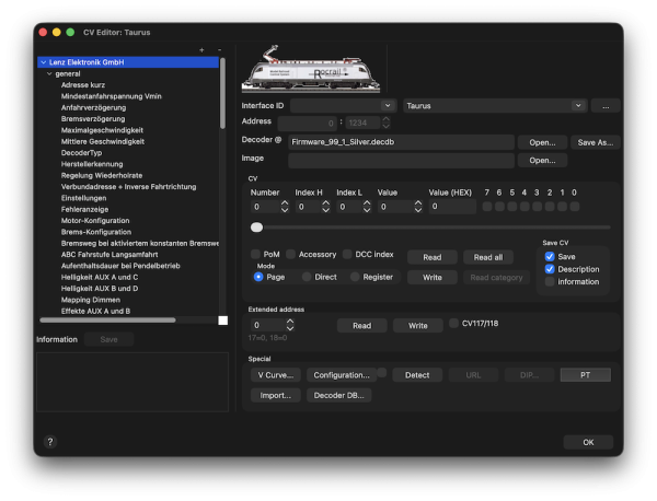 - "petit décodeur" Zimo (MX618, MX621, MX622, MX623, MX630, MX631, MX632, MX633 et autres décodeurs sans son). Les descriptions du CV sont en allemand.