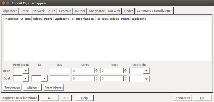 Hiervoor zal de Rocrail Server trace moeten worden nagegaan om te zien welk Interface ID, adres en port wordt gemeld bij het bedienen van de wissen met het gewenste apparaat