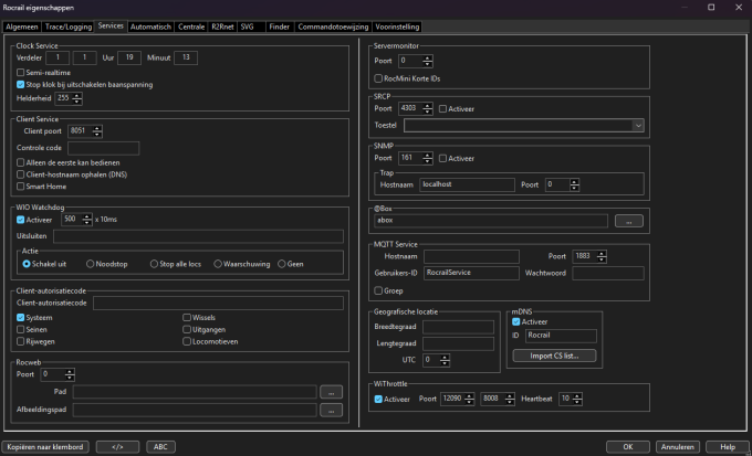 - Algemeen | Trace/Logging | Services | Automatisch | Centrale | R2Rnet | Router | RocWeb | Finder | Commandotoewijzing