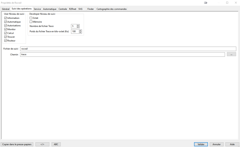 - Général | Suivi des opérations | Services | Mode automatique | Contrôleur | R2Rnet | SVG | Finder | Cartographie des commandes