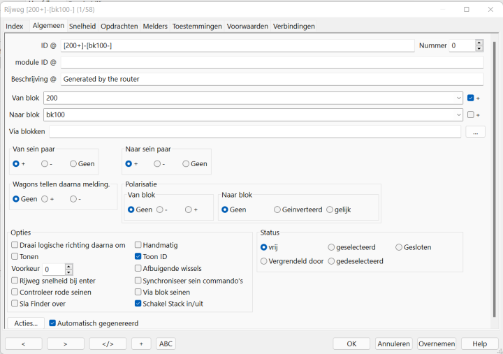 De ID wordt in het hele Rocrail-programma gebruikt als een unieke sleutel om naar deze route te verwijzen en is daarom erg belangrijk.