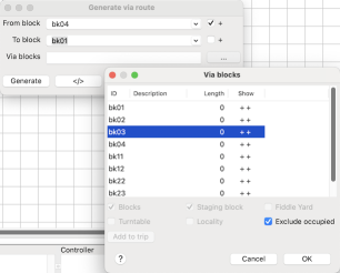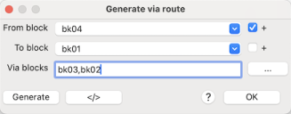 Hint: as an additional feature the field "Via Blocks" can be left empty to generate a route from one block to a next block.