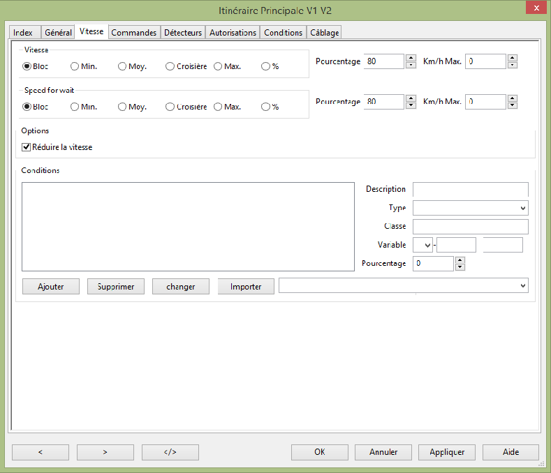 - Index | Général | Vitesse | Commandes | Détecteurs | Autorisations | Conditions | Câblage | Voies | Générer via