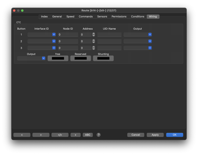 Instead of feedback signals for evaluating buttons on external hardware (e.g. a control panel), output objects in the track plan can alternatively be used as buttons for controlling the ZBL. The output absolutely requires an address.