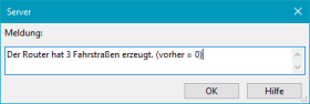 Zur Anzeige der Router-Ergebisse im Server-Trace und der Meldungen im Popup-Dialog muss Traces: Berechnungen aktiviert sein.