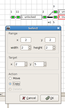 Pour capturer tous les objets, la valeur du zoom doit être réduite. - Sélectionner le nouveau niveau ("3") dans le champs Niveau cible et choisir l'action "Déplacer".