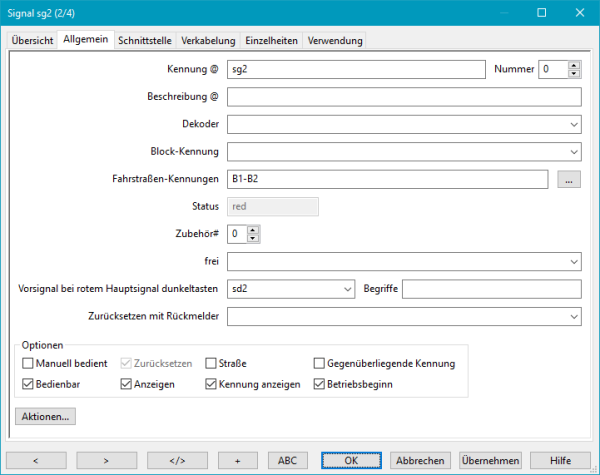 Wenn aktiviert, wird das Signal-Objekt an der angegebenen Stelle im Gleisplan angezeigt.