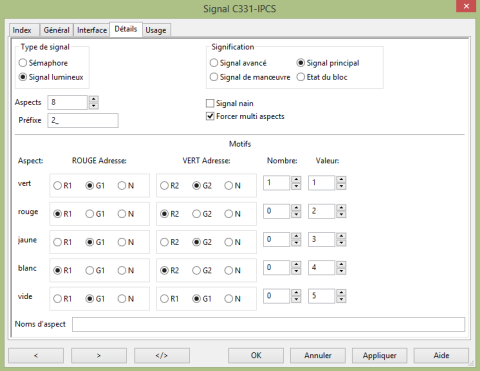 - Les signaux multi aspects peuvent uniquement être commandés par une commande d'action, d'itinéraire ou manuellement.