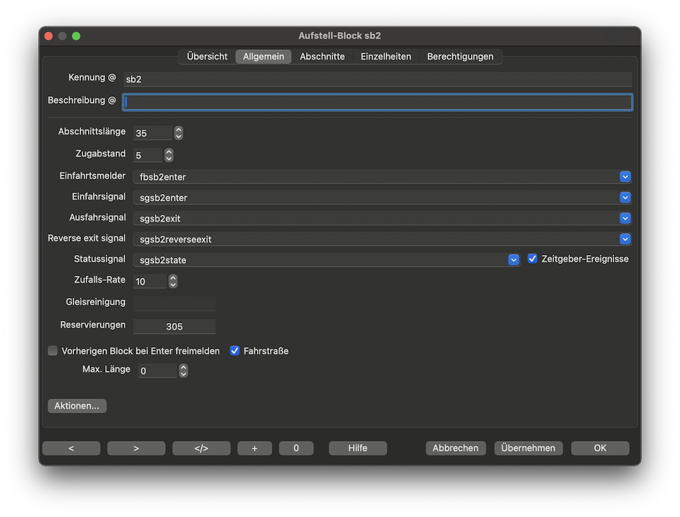 Die Kennung wird von Rocrail als eindeutiger Schlüssel zur Identifizierung des Aufstell-Blocks verwendet und ist sehr wichtig.