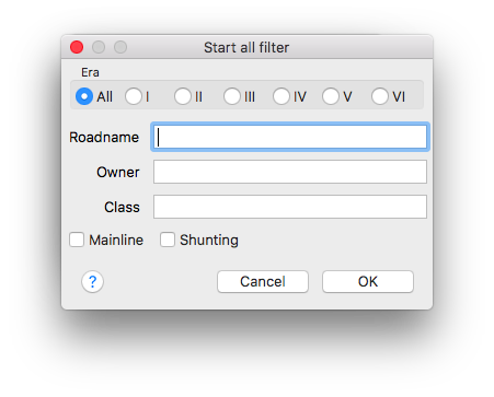 This dialog can be used to filter locomotives by the following criteria:
