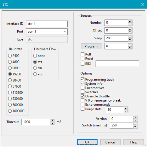 The Rocrail definition must be set to protocol Multiport and Interface-ID pointing to this controller.