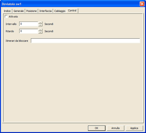 Detti itinerari saranno bloccati prima dell'esecuzione dell'azione ON. Dopo l'azione OFF tutti gli itinerari saranno sbloccati. Assicurarsi che l'ID dell'oggetti deviatoio non è uguale all'ID loco!
