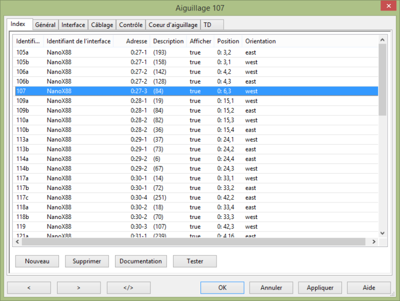 La colonne description indique entre parenthèses le nombre de mouvements de l'aiguillage.
