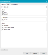 To insert these symbols into the track plan, a standard symbol of the desired object type must be selected. The number of the own symbol must be set in the properties dialog of the object in the fields SVG, Number or Accessory#. In object types with the option Accessory can be specify that the symbol from the accessory theme should be used.