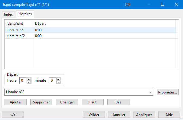 Ouvre la fenêtre de configuration de l'horaire sélectionné dans la liste.