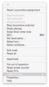 - Reeds gedefinieerde treinen kunnen worden gekoppeld dan wel ontkoppel met een loc met de optie "Treinstel toewijzen"resp. "Treinstel vrijgeven" in de Index tab.