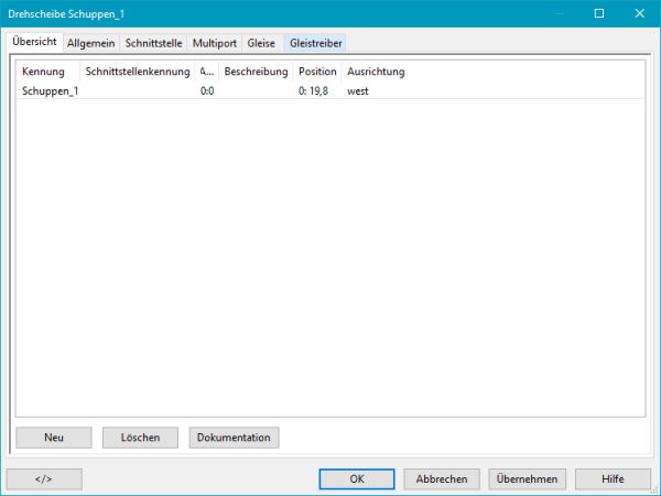 Erzeugt einen neuen Drehscheiben-Eintrag mit der Kennung “New”. Diese sollte aber auf der Registerkarte 'Allgemein' geändert werden.