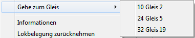 Gleiche Funktionen, wie Start und Stop im Kontextmenü des Lok-Bedienfeldes (s. dort).