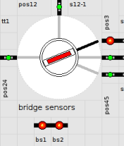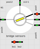 De brugpositie melders zijn voor de simulatie op 'zichtbaar' gezet maar kunnen ook op niet zichtbaar gezet worden.