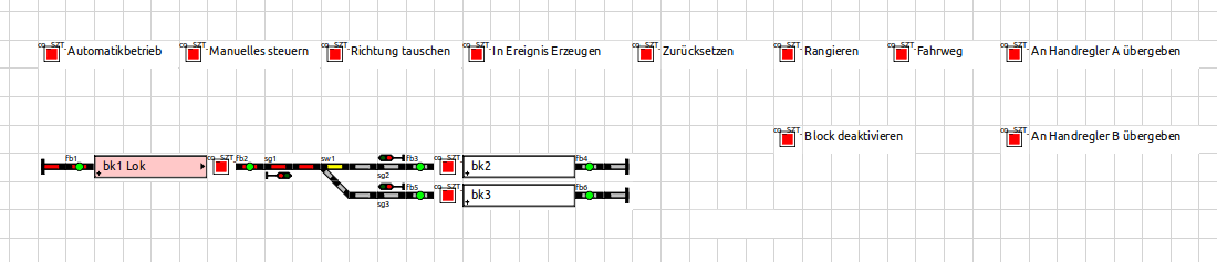 Es wird mit Ausnahme der Funktion Fahrweg, nur in Rocrail enthaltene Funktionen verwendet und nicht in die Software eingegriffen.