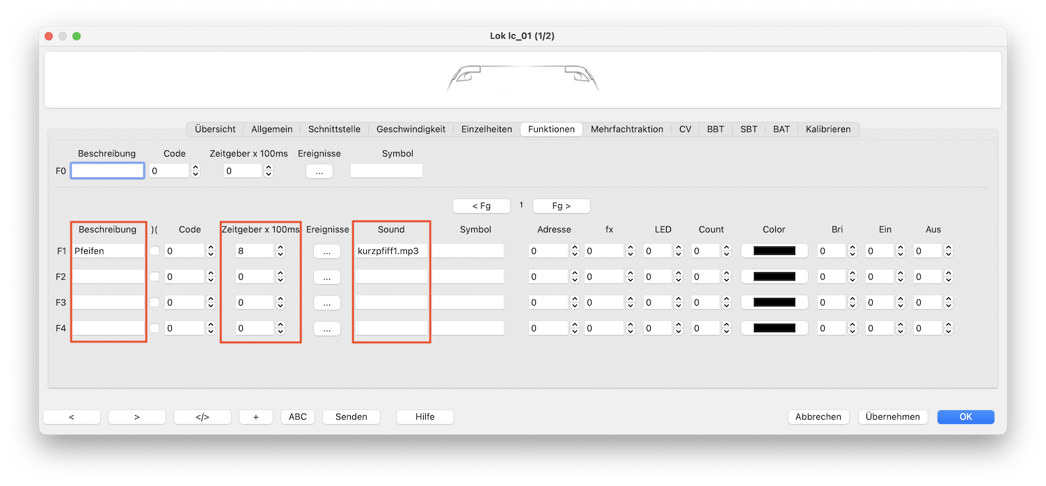 Das Pfeifen ist als Funktion in den Eigenschaften einer Lok konfiguriert.