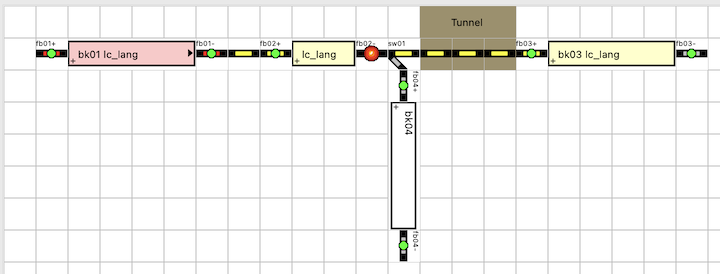 | 1 | bk01 | bk03 | ja | langer Zug über kreuzenden Block bk02 | fb02- | [bk01-]-[bk03+] = locked |