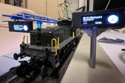 So sorgen die im Kreis fahrenden Lokomotiven für einen ständigen Wechsel auf der Display-Anzeige.