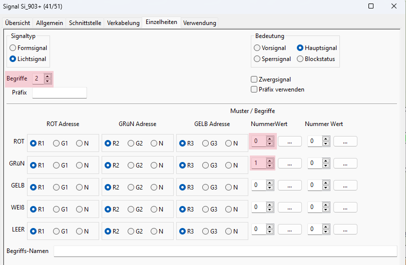 - Da ein Hp0/Hp2-Signal 2-begriffig ist, wird unter Begriffe auch der Wert 2 eingetragen